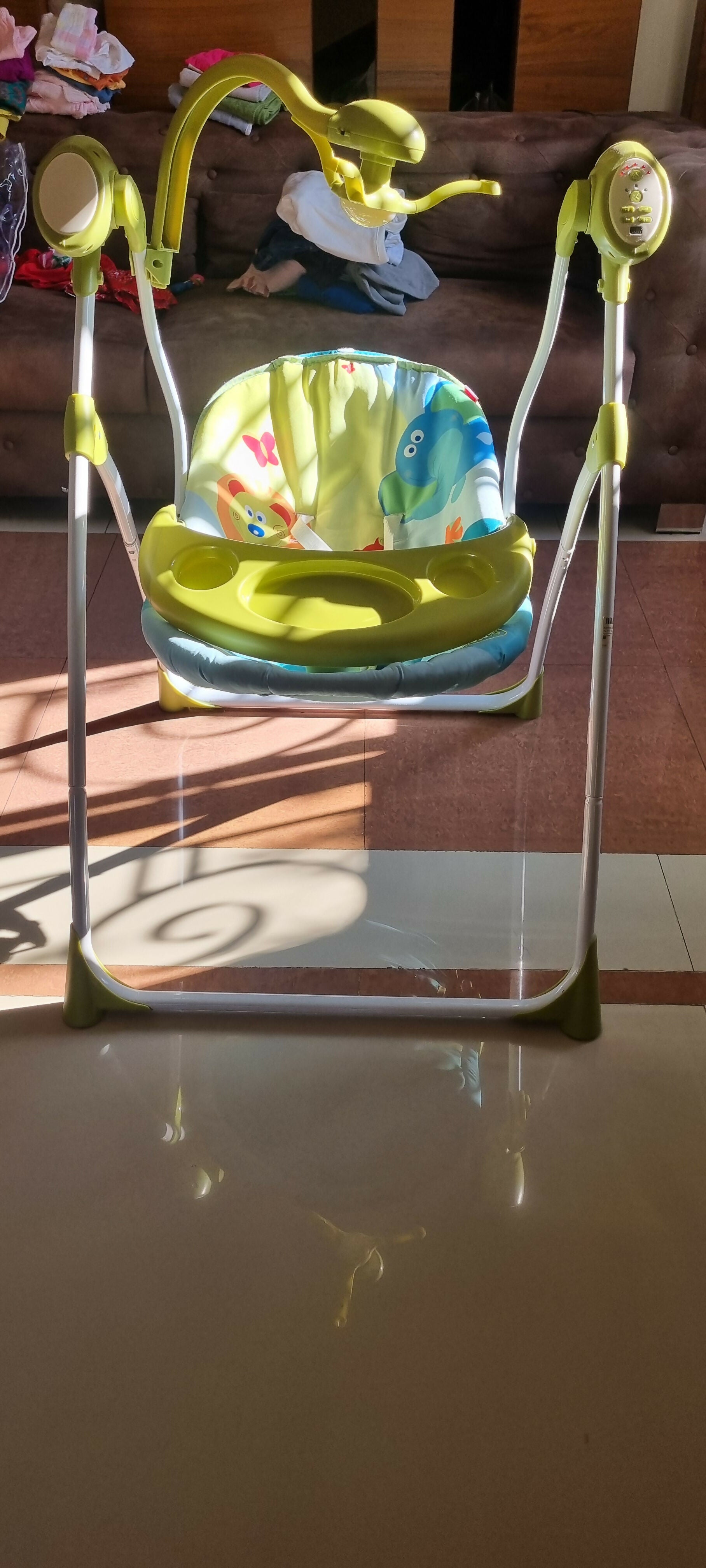 Try it !!- It has automatic as well as manual mechanism - It has 3 timer settings- 3 recline positions helps baby to sit comfortably - 5 points safety harness for the safety - Toy bar is detachable - Feeding tray is removable when not needed