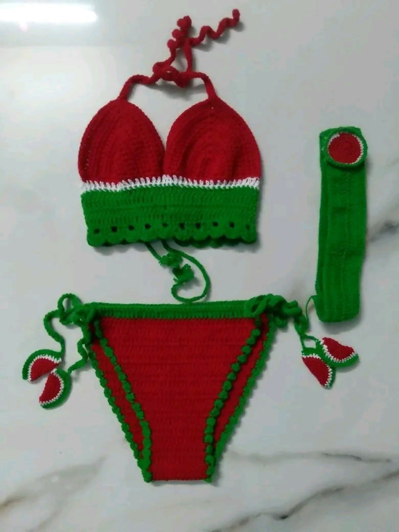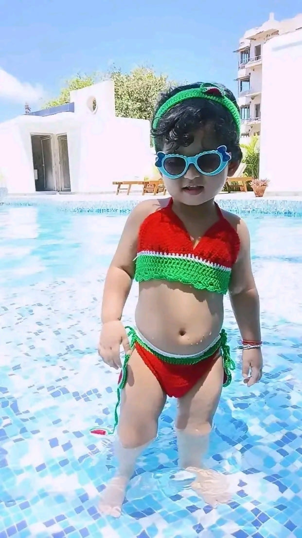 Adorable hand-crafted crochet bikini set designed for little ones who love the beach or pool. Each piece features delicate, breathable crochet work that's gentle on sensitive skin while offering charming vintage-inspired style. Perfect for summer outings, vacation photos, or special occasions. The soft, stretchy fabric ensures comfort and easy movement, making it ideal for active toddlers. Available in multiple colors to match your baby's personality. A unique, handmade piece that stands out from mass-produced swimwear.