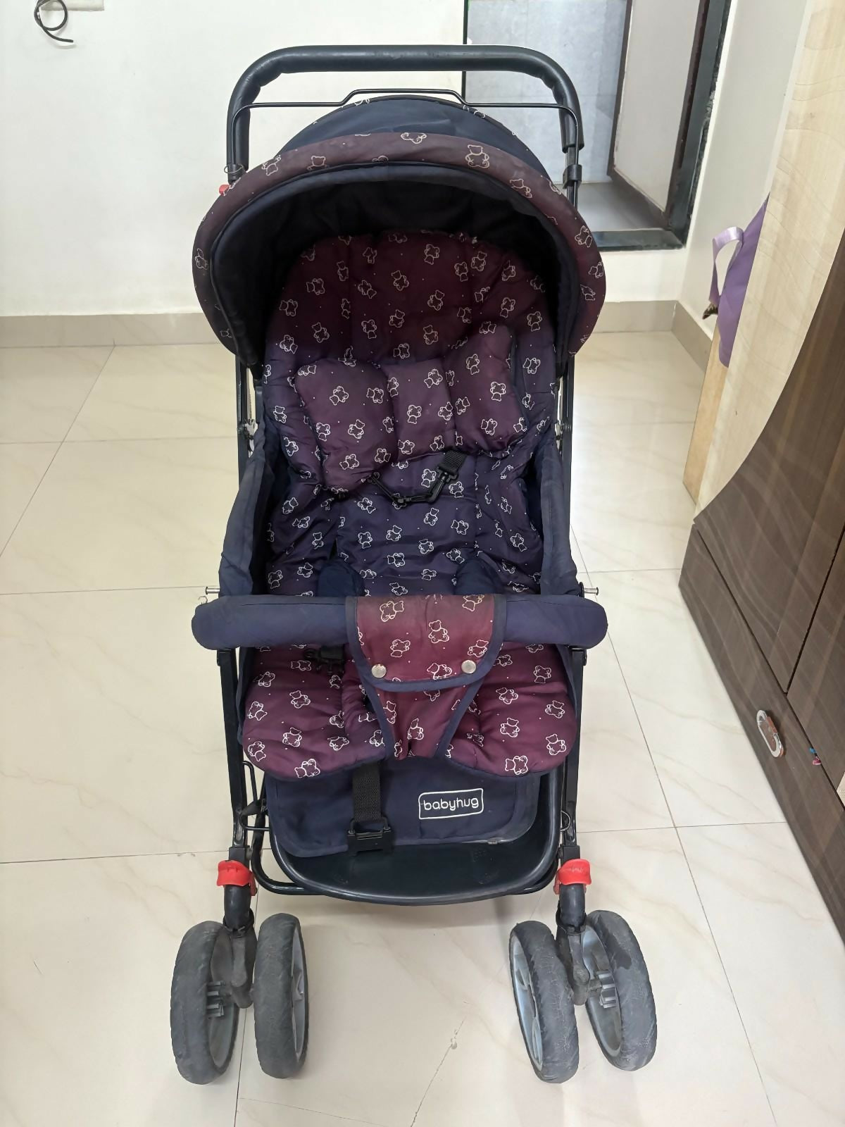 The BABYHUG Cocoon Stroller in Dark Navy Blue offers a versatile and comfortable ride for your baby with its reversible handle, allowing easy switching between parent-facing and outward views. Designed for convenience, it features a cozy cocoon design that keeps your child secure and snug while you stroll. Its sturdy build and smooth maneuverability make outdoor adventures effortless, while the stylish navy blue color adds a touch of elegance to your outings. Perfect for parents seeking both functionality and comfort in one stroller.