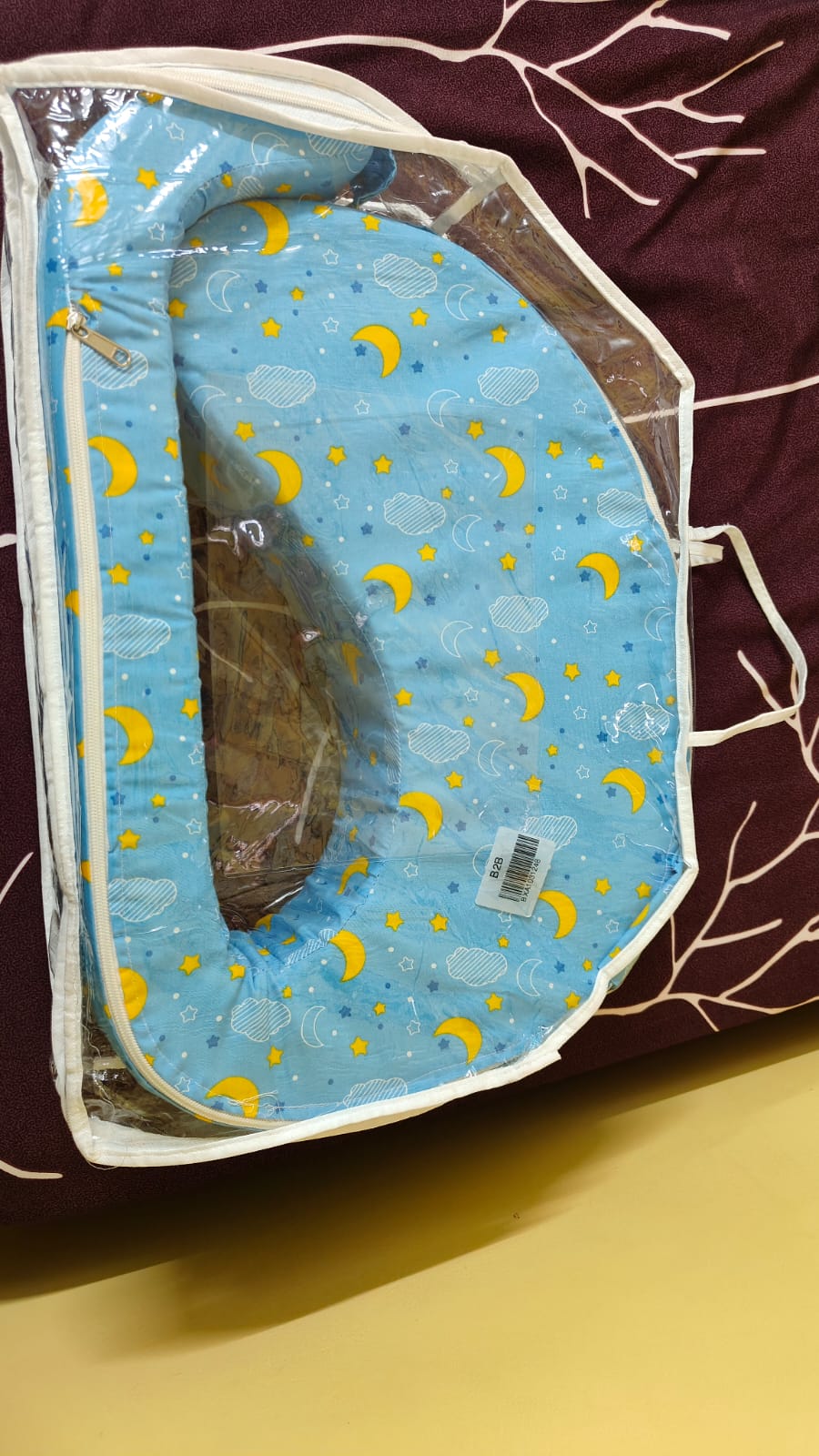 BABYHUG Montana Wooden Cot/Crib Cum Rocker – Sturdy, Safe & Comfortable Baby Bed ( L 107 x W 60 x H 85 cm) + Babyhug feeding pillow with belt - blue