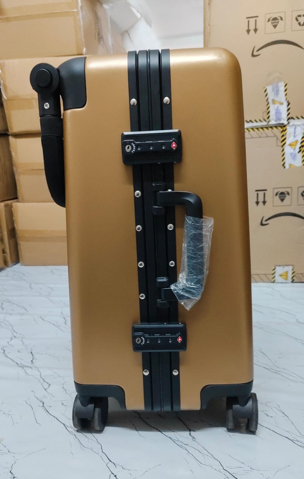 Defect- There are slight scratches on the suitcase as visible in pictures. This product is new (not preowned) but with few scratches, hence, the reduced price.