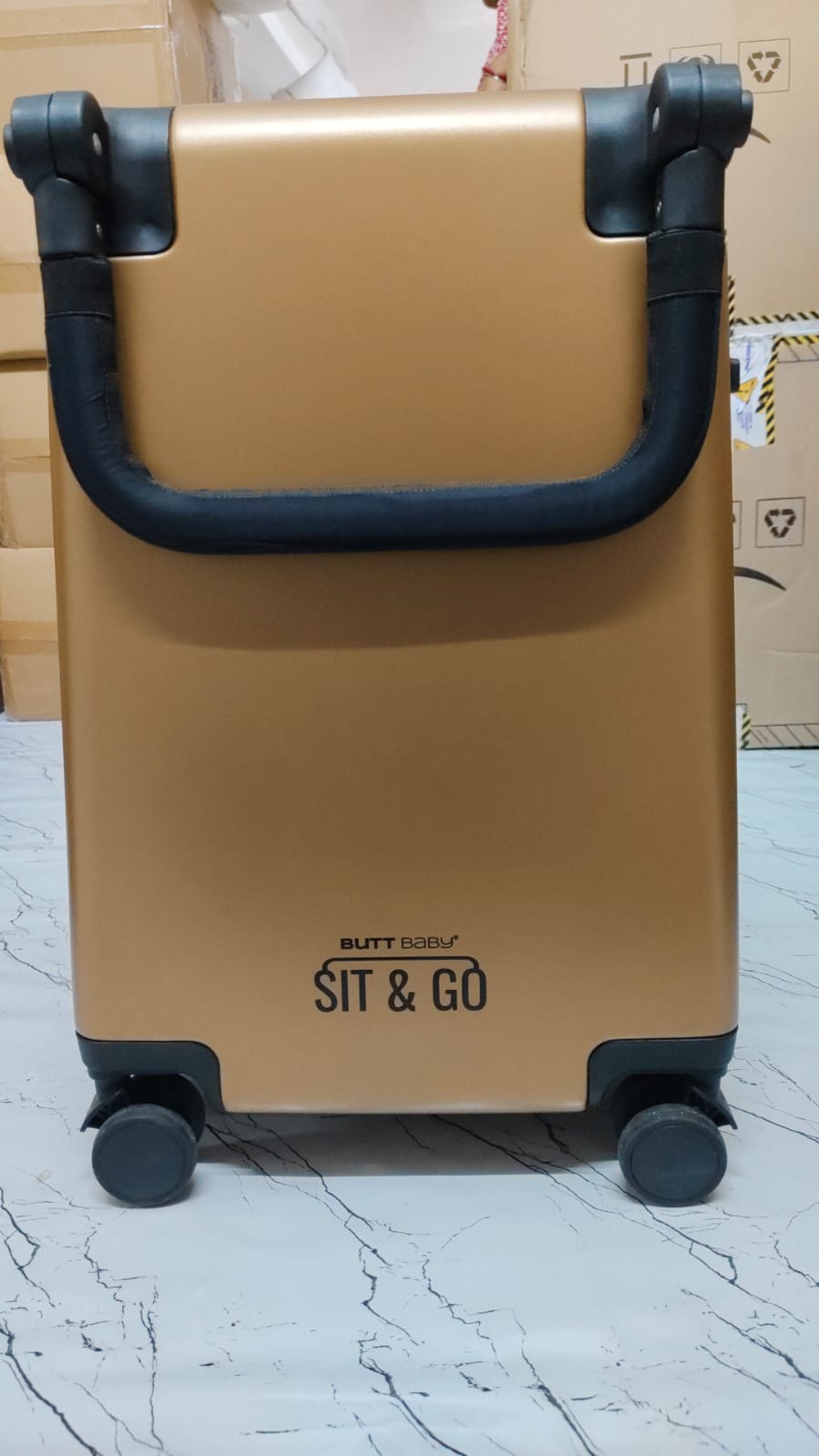 The BUTT BABY Sit & Go Cabin Luggage is a smart and fun travel companion that doubles up as a ride-on for kids and a cabin-friendly suitcase for parents.