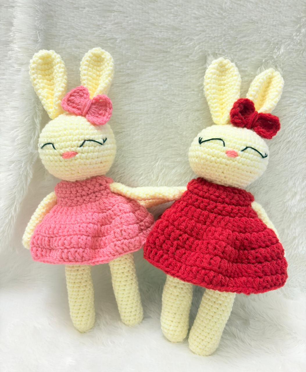 Make your little one’s moments extra special with this adorable Crochet Bunny and Matching Rattle Set. The bunny is lovingly handmade at 8 inches height, perfect for cuddling during sleep or while traveling. The rattle comes in a matching color, designed with a rattle ball placed inside to create a gentle sound that babies love.