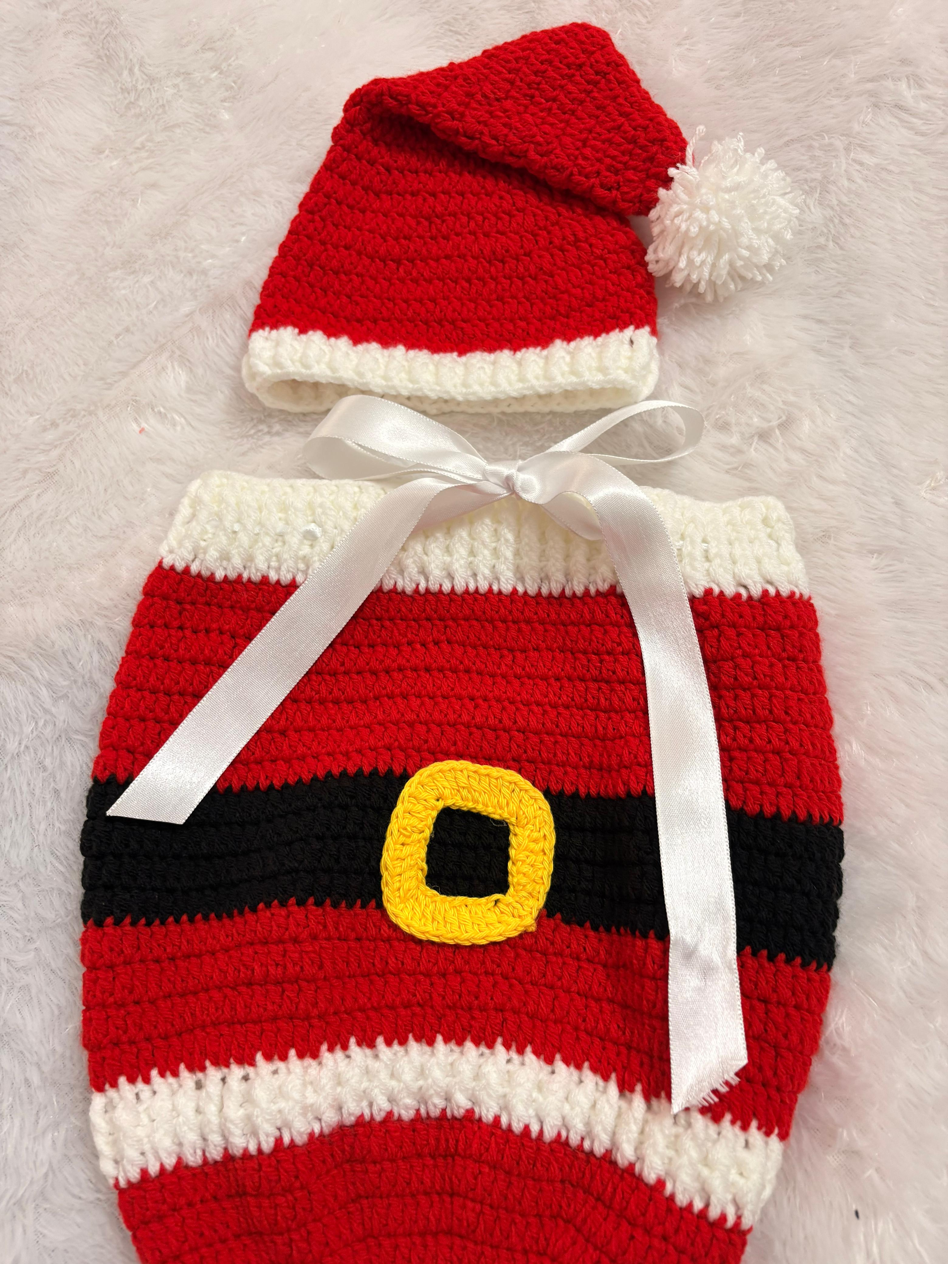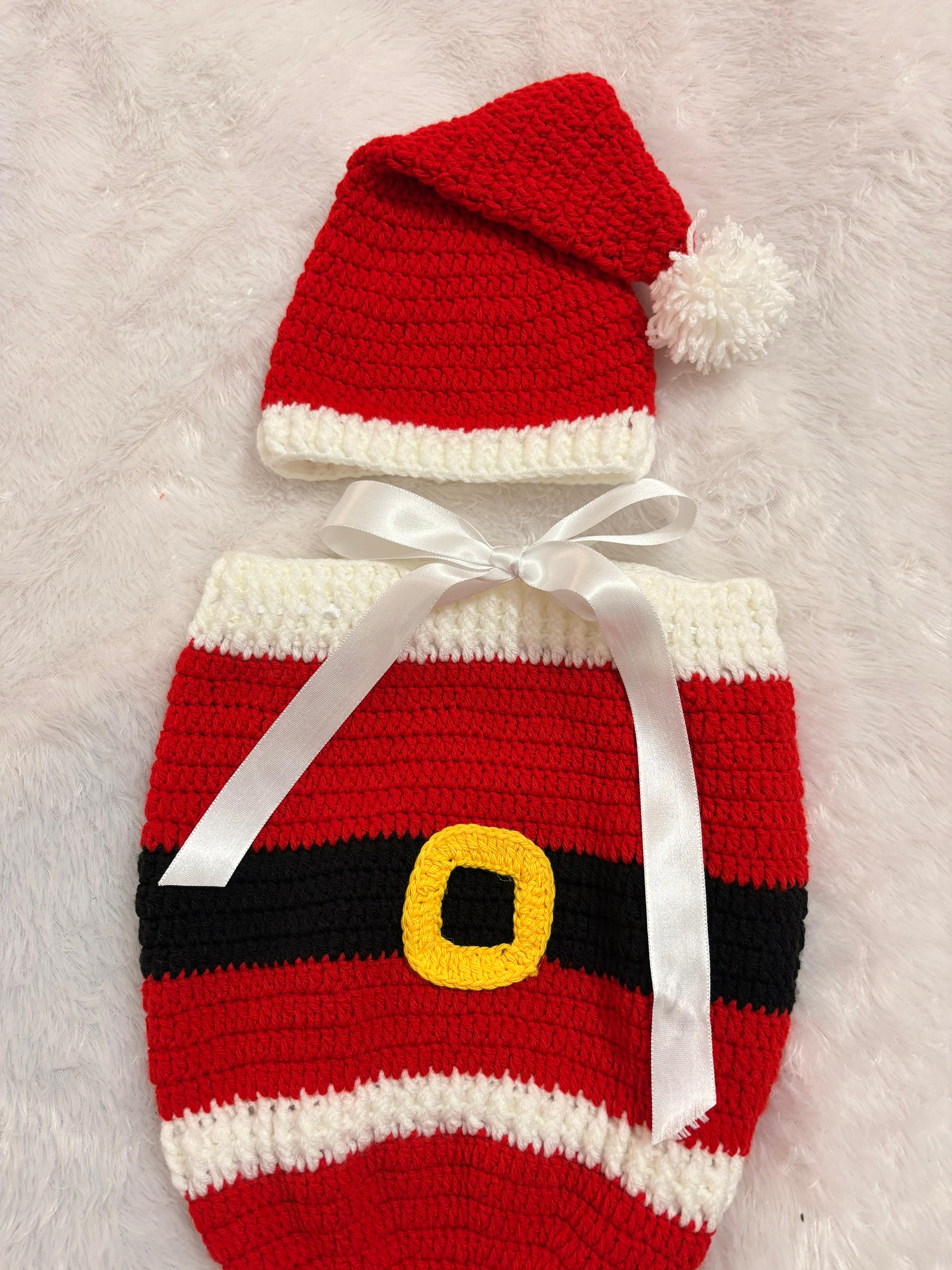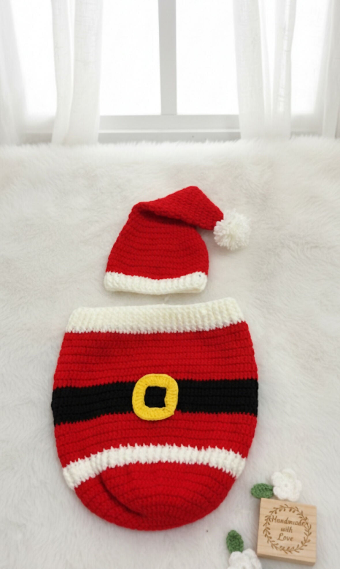 Shop now for our Child Safe Acrylic Yarn Cocoon + Cap set, offering warmth, safety, and adorable style for your newborn!