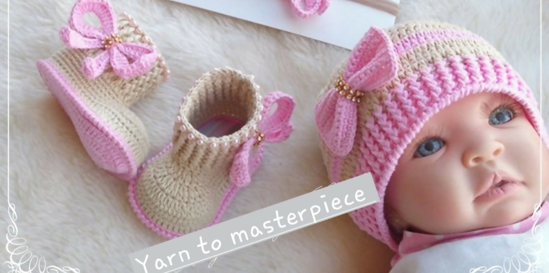 Crochet baby booties and cap