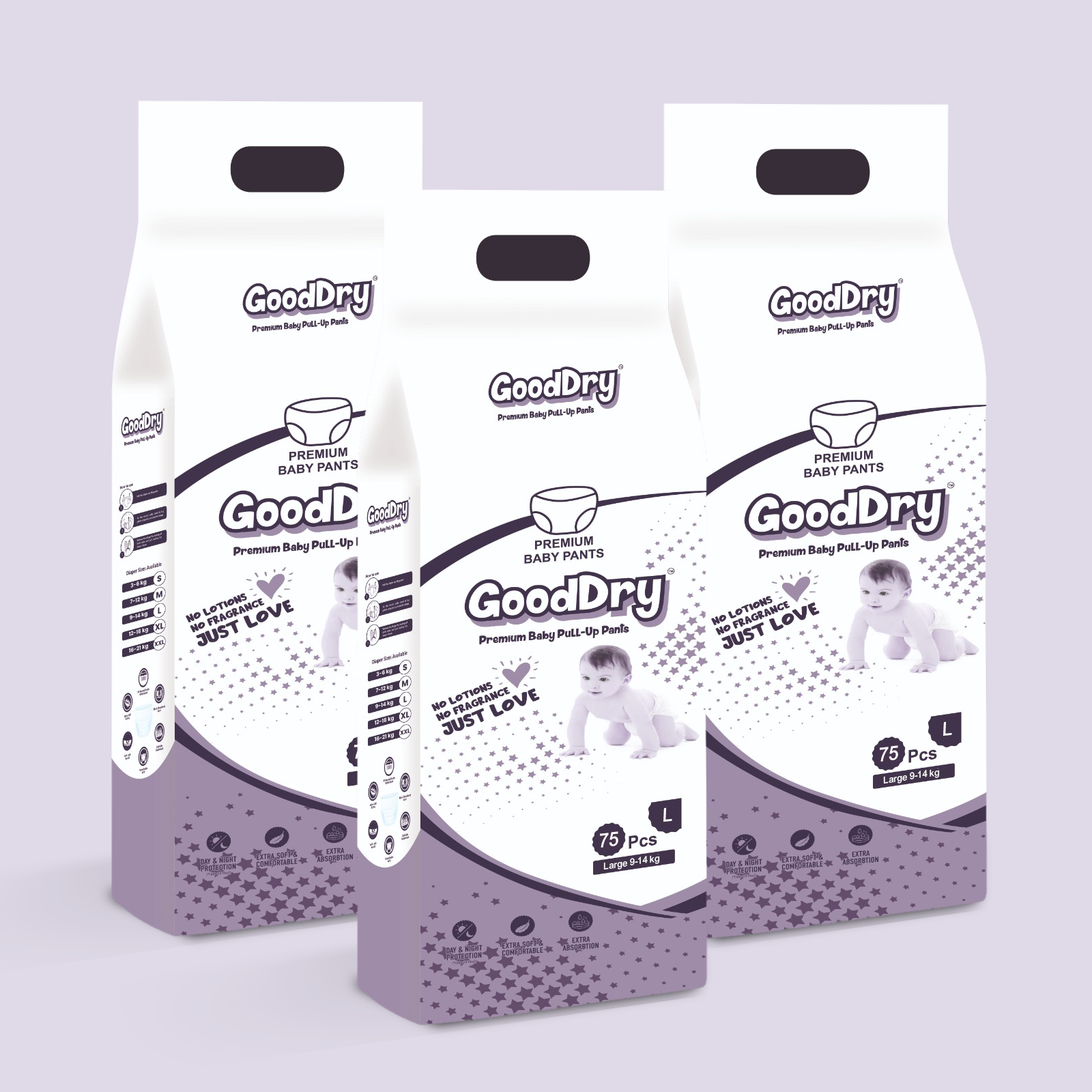 Experience ultimate comfort for your little one with GoodDry Premium Extra Soft Baby Pants. Made with the softest materials, these pants provide all-day comfort and protection for your baby's delicate skin. Say goodbye to irritation and hello to happy, dry babies. Order yours now!