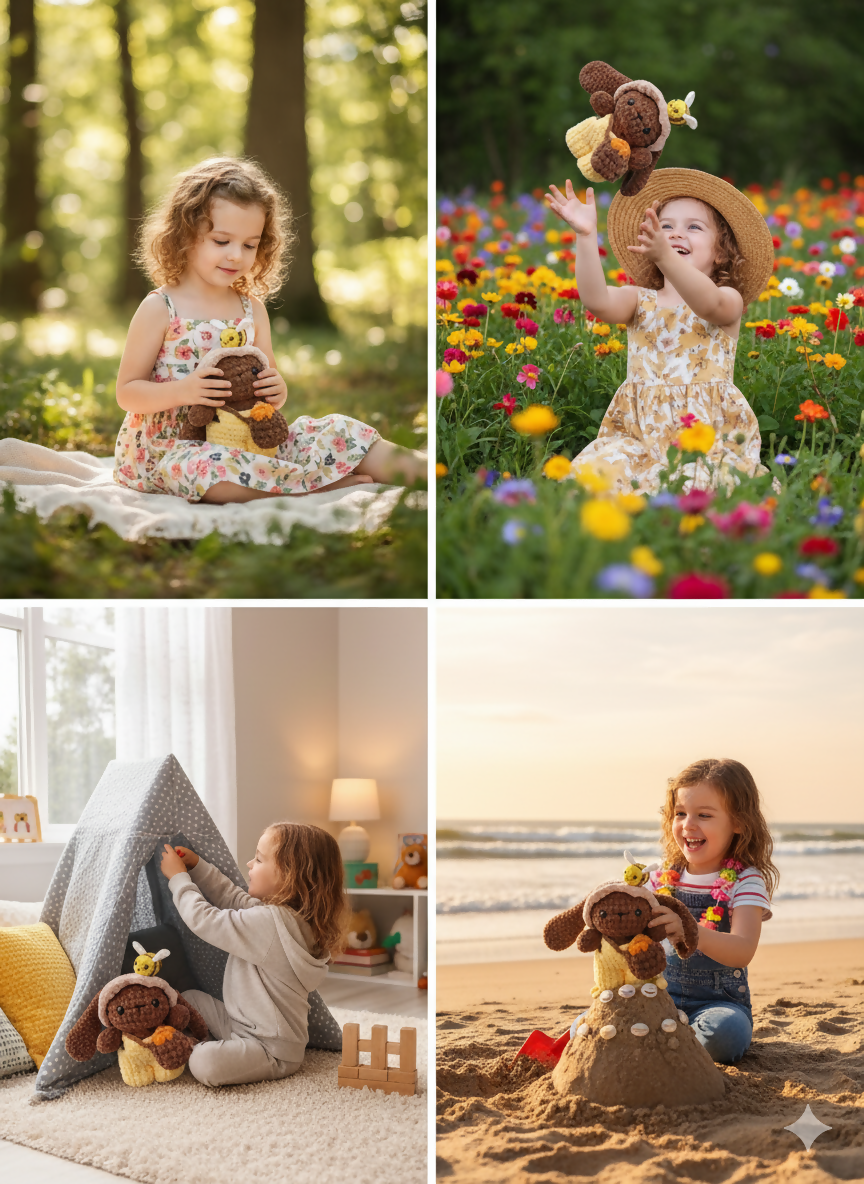 Experience the cuteness overload with our Honey Bunny with Bee Crochet Plushie! This adorable plushie is handmade with love and features intricate crochet details. Its soft and huggable material will bring joy and comfort to anyone who snuggles with it. Perfect for adding a touch of charm to any room . Meet this adorable handmade crochet rabbit, dressed in a cozy honeycomb outfit with a cute little bee companion! A perfect gift or cuddle buddy for all ages.