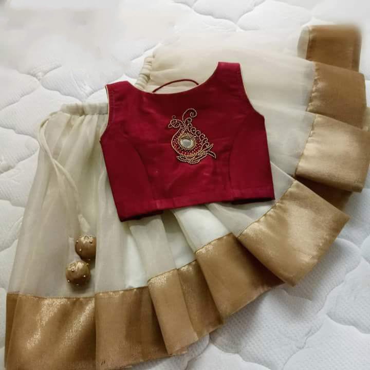 Dress your little one in the timeless elegance of Kerala with this beautifully crafted Kerala Style Lehenga Choli for babies.