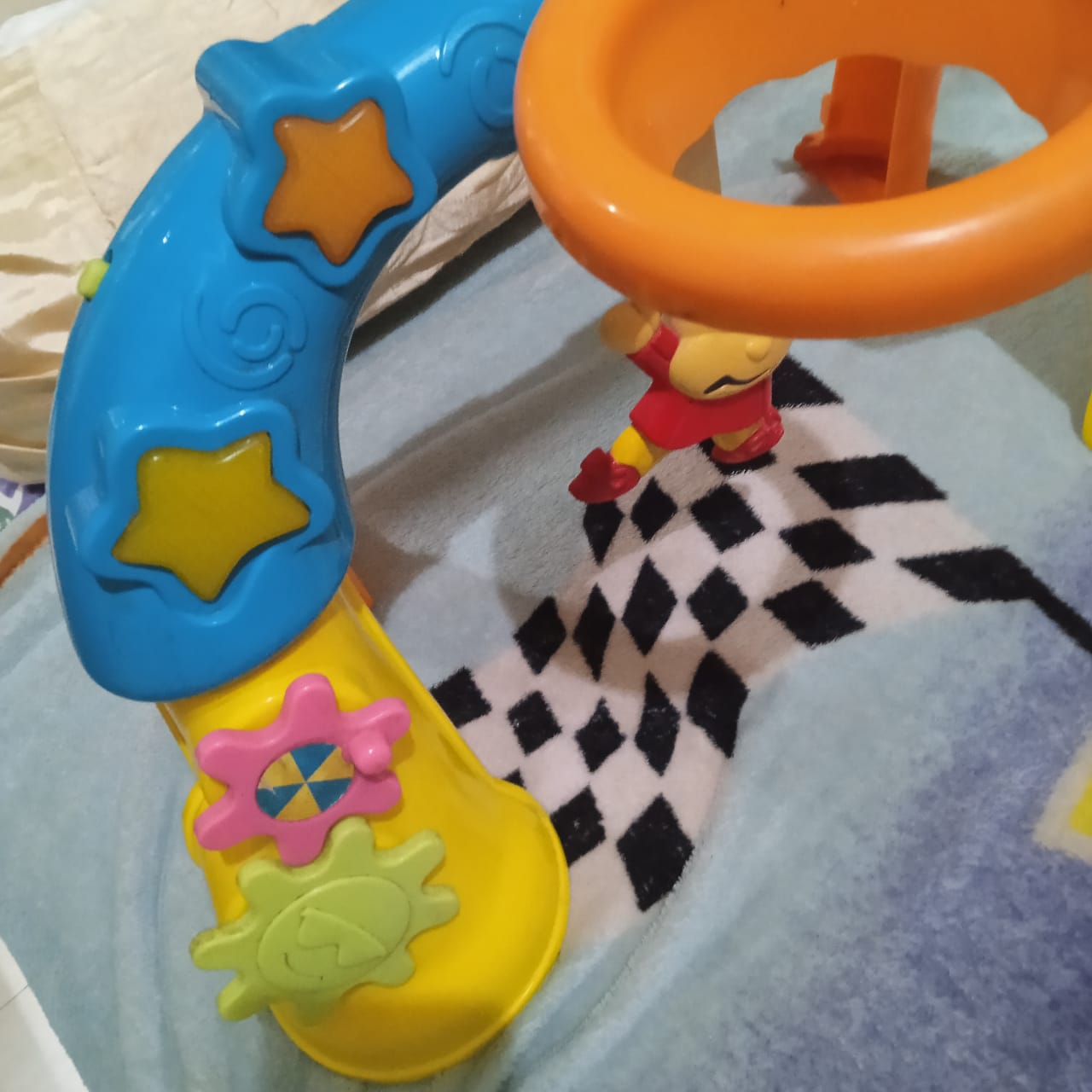 Includes a Peppa Pig Classroom playset, Nilkamal Toy Dining Set, Foam Number Mat, and a colorful Play Gym.