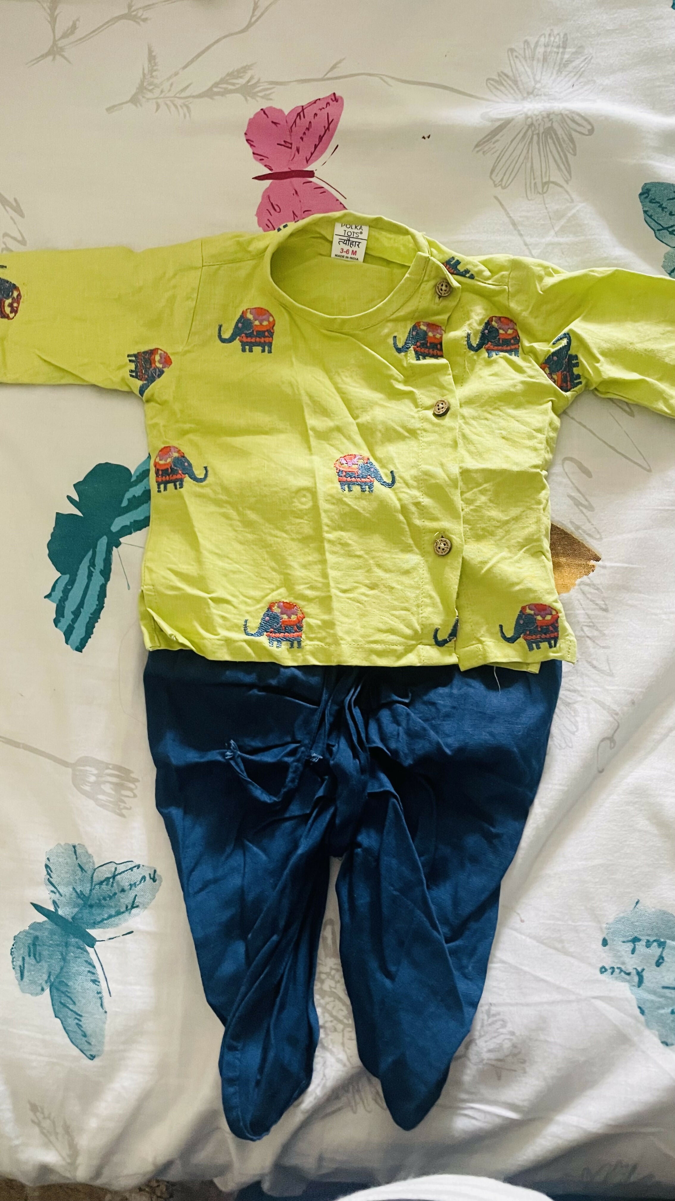 Introducing the perfect traditional outfit for your little one; POLKA TOTS Kurta Dhoti Set for baby boys! Featuring a comfortable kurta and dhoti, this set will keep your baby looking stylish and feeling cozy. Perfect for special occasions or everyday wear, this set will make your little boy stand out with its unique design.