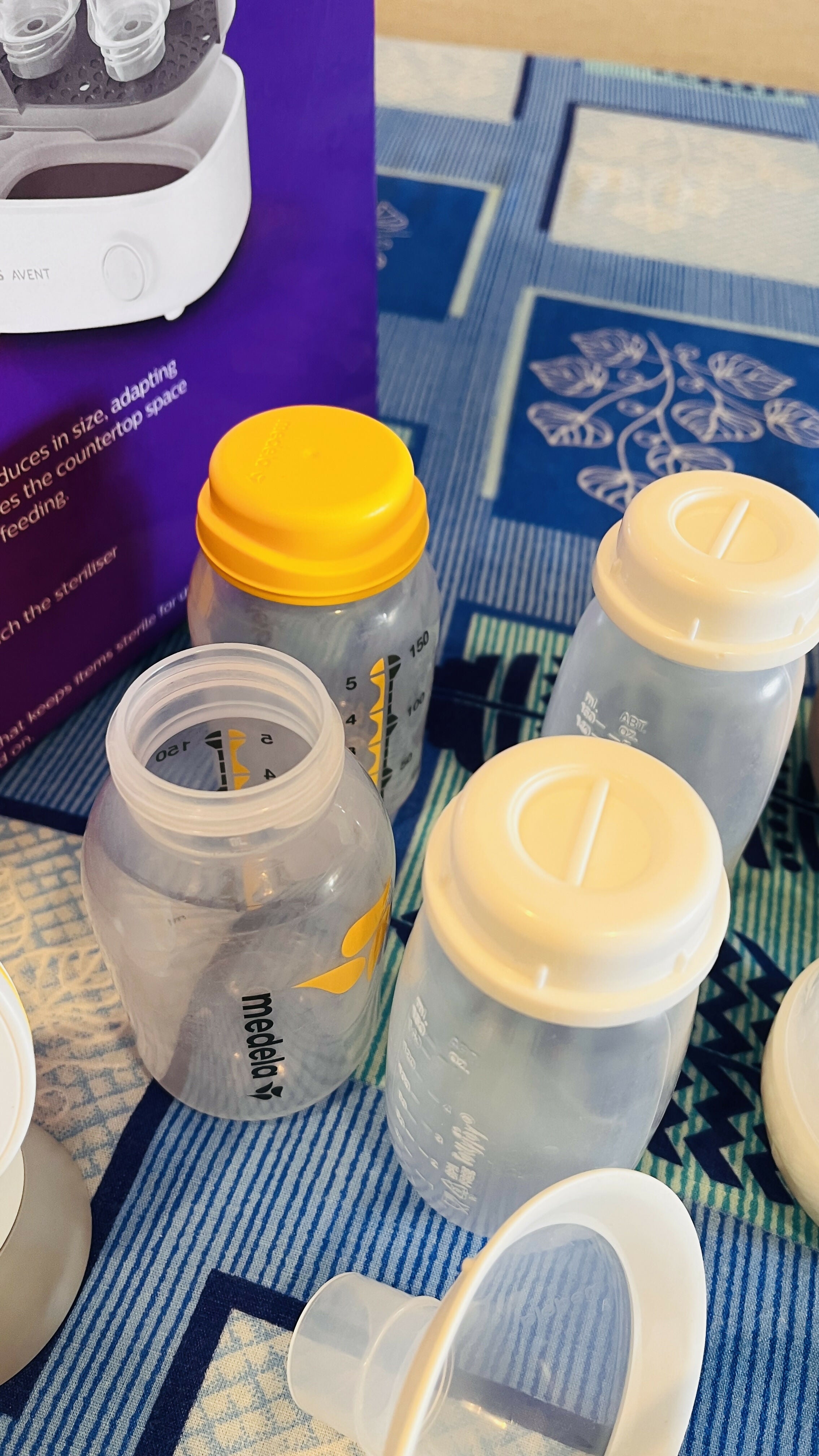 NOTE - one of the yellow bottle cap is missing but providing extra bottles and one MAM’s feeding bottle with dr brown pacifier as a compensation