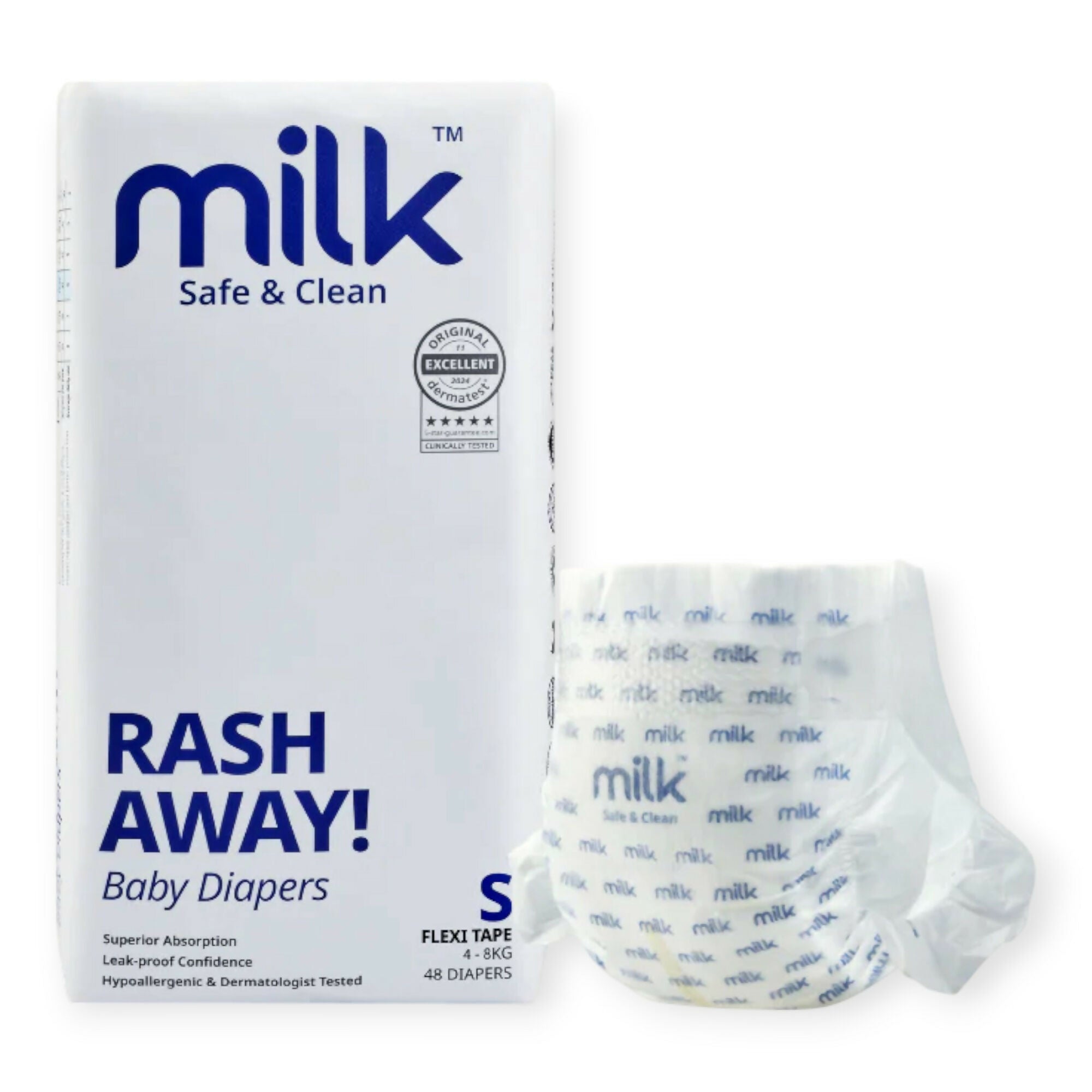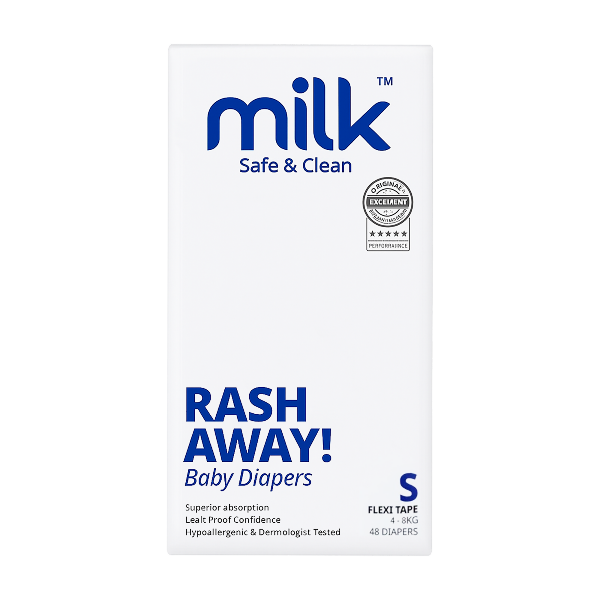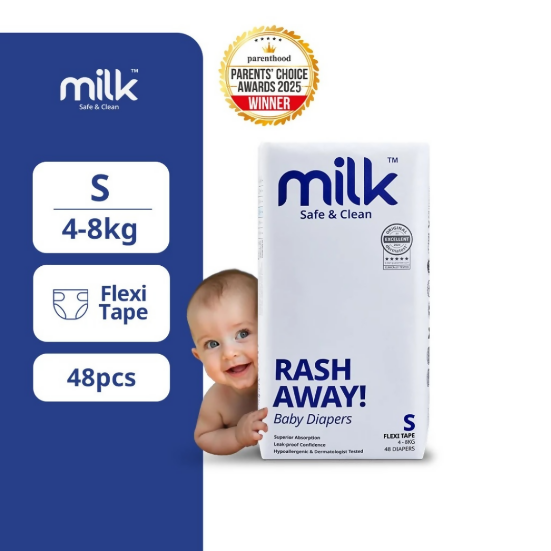 MILK™ Flexi Tape diapers are designed to provide your baby with the care they deserve. Equipped with advanced RASHDEFENSE™ and moisture-lock technology, these diapers ensure up to 12 hours of rash-free protection.