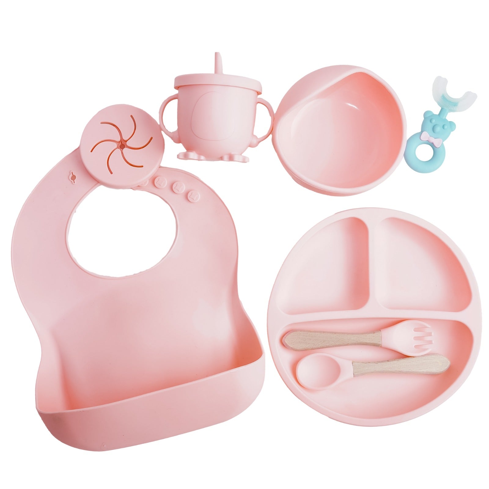 Designed with premium food-grade silicone, this complete set includes everything your baby needs for a smooth transition to self-feeding, while ensuring safety and convenience for parents.